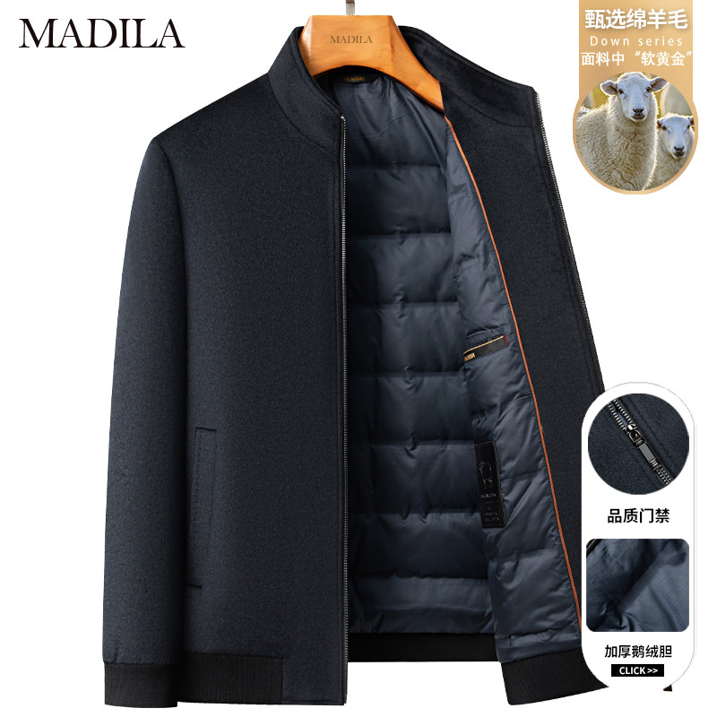 含桑蚕丝羊绒大衣男冬季中年毛呢行政夹克加厚鹅绒内胆羊毛呢外套