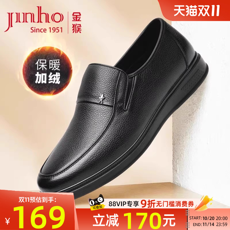 意尔康男鞋冬季男士真皮商务正装皮鞋加绒低帮二棉鞋新郎结婚男式