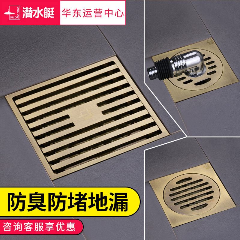 潜水艇正品官方店防臭仿古铜地漏套餐复古欧式全铜淋浴房浴室旗舰