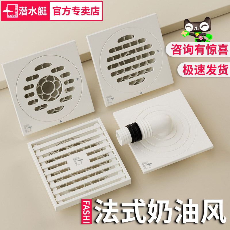 潜水艇奶油风奶白色地漏全铜防臭地漏套餐卫生间洗衣机官方旗舰店