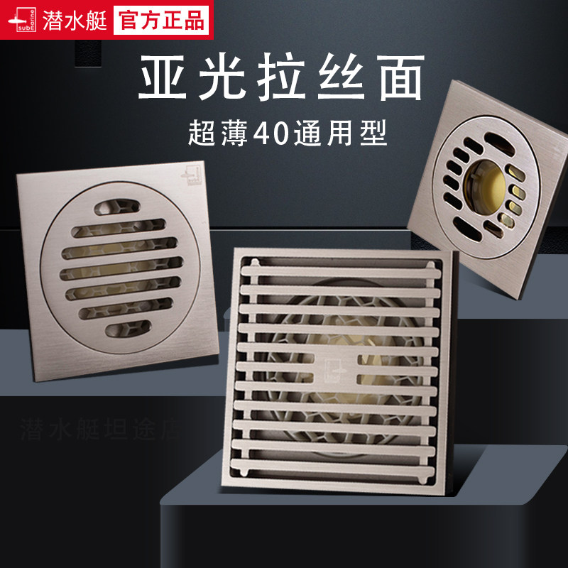 潜水艇地漏亚光拉丝面超薄40型套餐40/50管移位通用精铜防臭套装