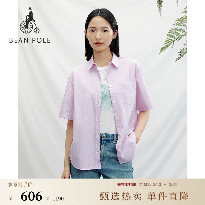 【新品】BEANPOLE滨波 夏季女士全棉素色五分袖休闲纯色短袖衬衫
