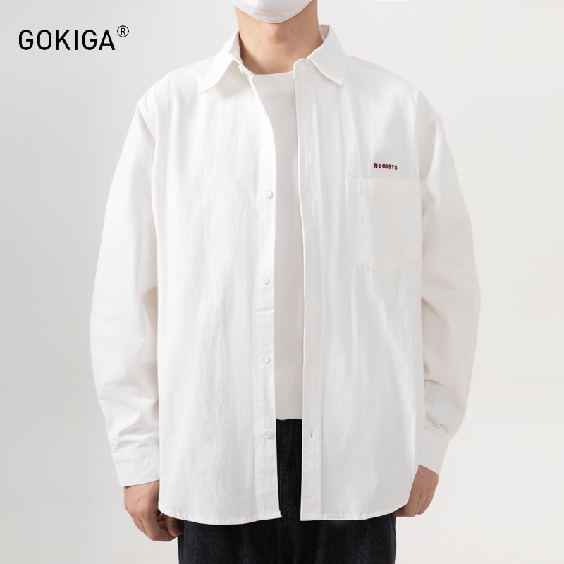 GOKIGA宫崎迦秋季日系纯色短袖衬衫男潮宽松休闲长袖衬衣外套8302