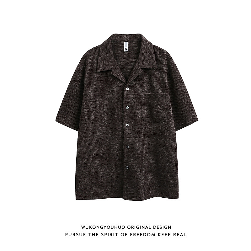 悟空有货夏季复古老钱风纯色短袖衬衫男女潮牌宽松高级感百搭衬衣