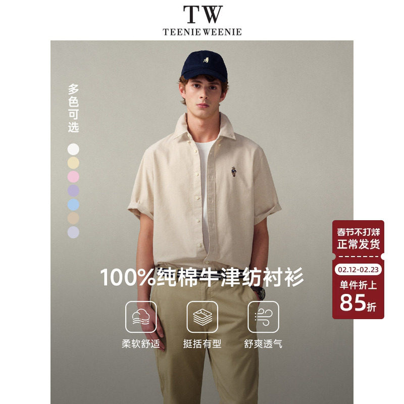Teenie Weenie小熊男装复古休闲舒适牛津纺纯色短袖衬衫2026年春