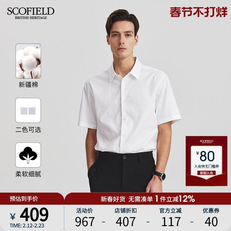【新疆棉】SCOFIELD男装夏季新款全棉通勤休闲纯色短袖衬衫
