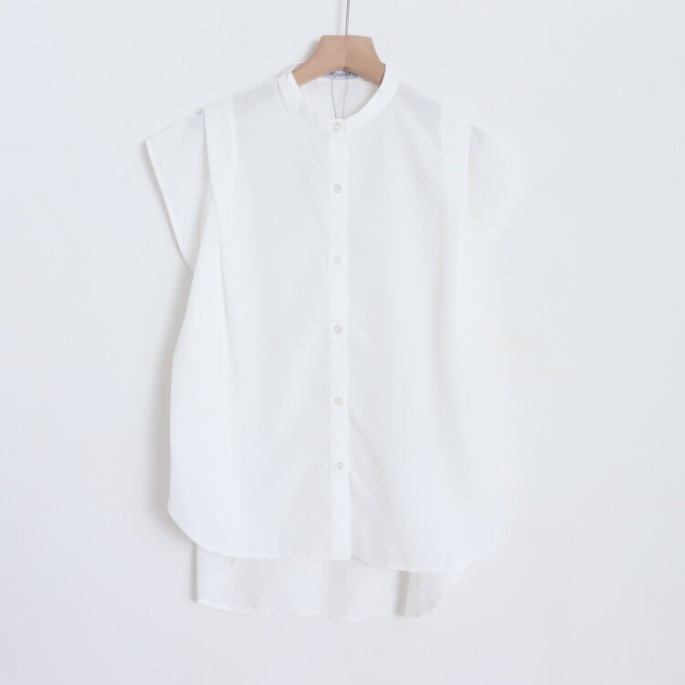 D14064日单新款客供料后纽扣套头微宽松女气质通勤纯色短袖衬衫