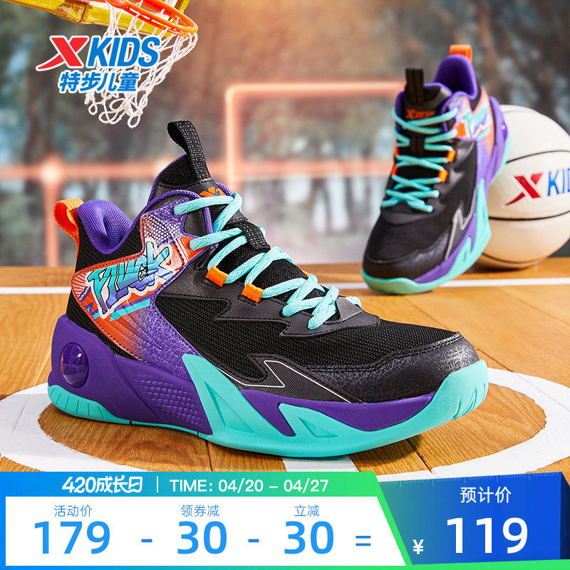 特步童鞋秋冬新款男童中大童儿童运动跑鞋耐磨防滑支撑系带篮球鞋