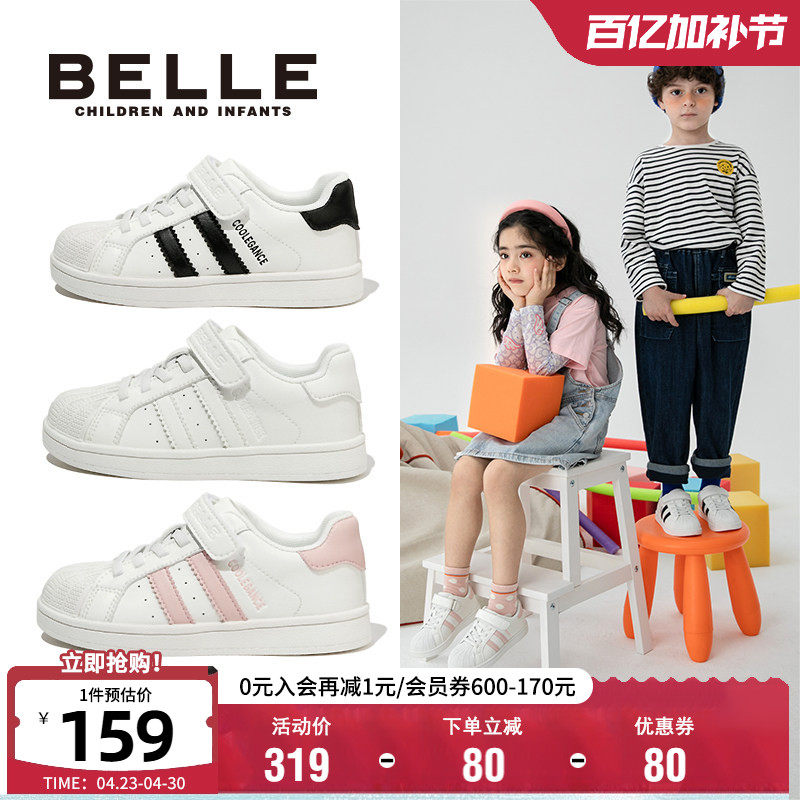 百丽童鞋儿童时尚小白鞋秋冬舒适透气男童软底板鞋女童休闲运动鞋