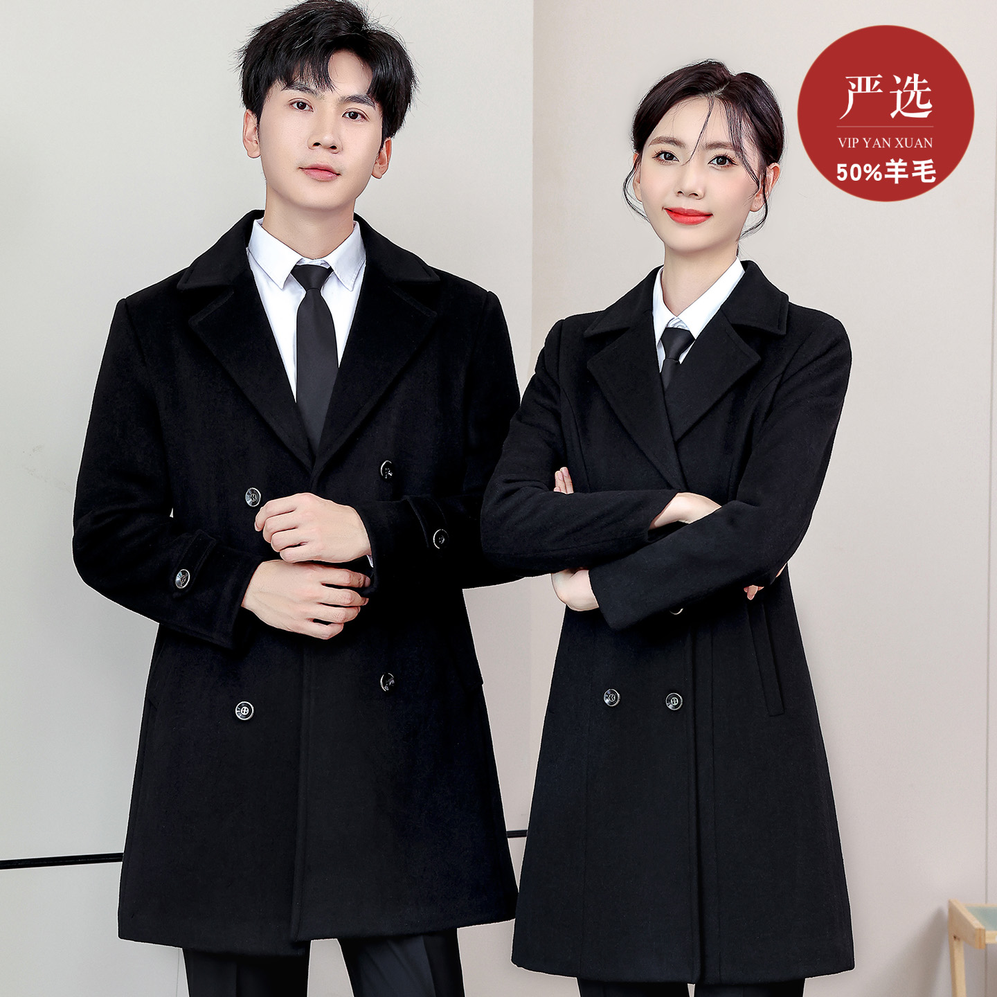 韩茗雅男女银行工作服大衣女职业公务员经理高端羊毛呢子外套加厚