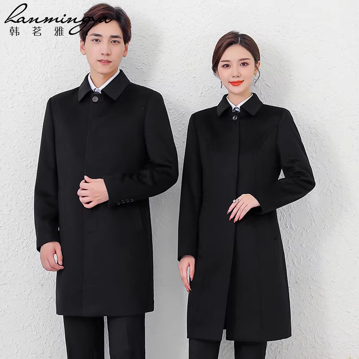 韩茗雅职业毛呢大衣男女冬中长羊毛物业工作服呢外套银行4s店工装