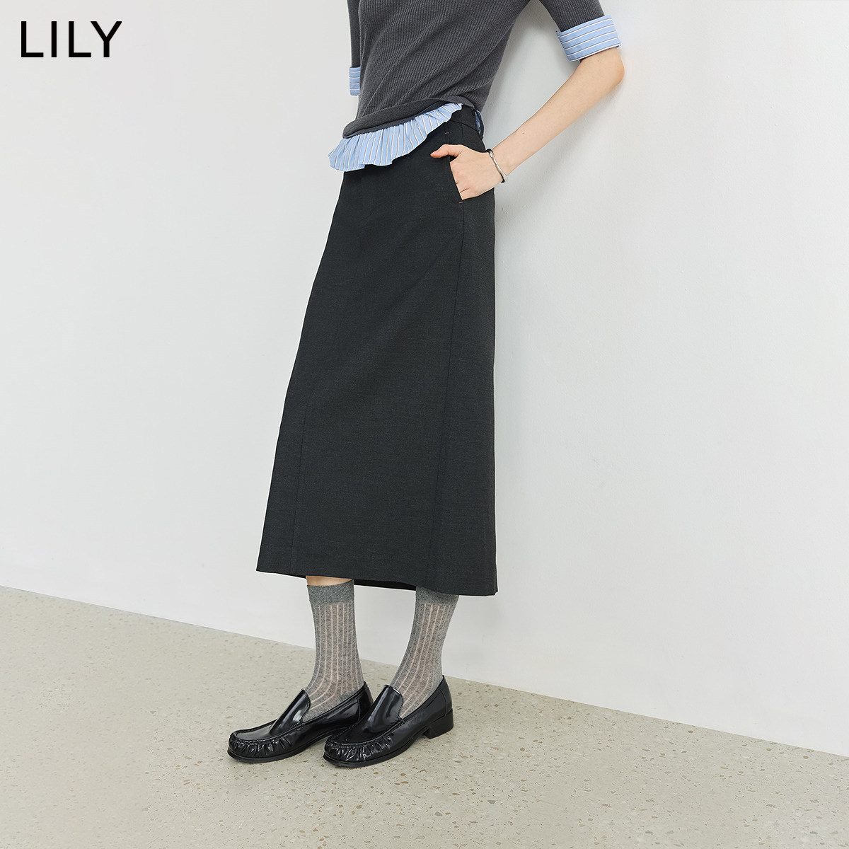可机洗LILY2025新款含羊毛格雷系职业通勤深色直筒裙女半身裙