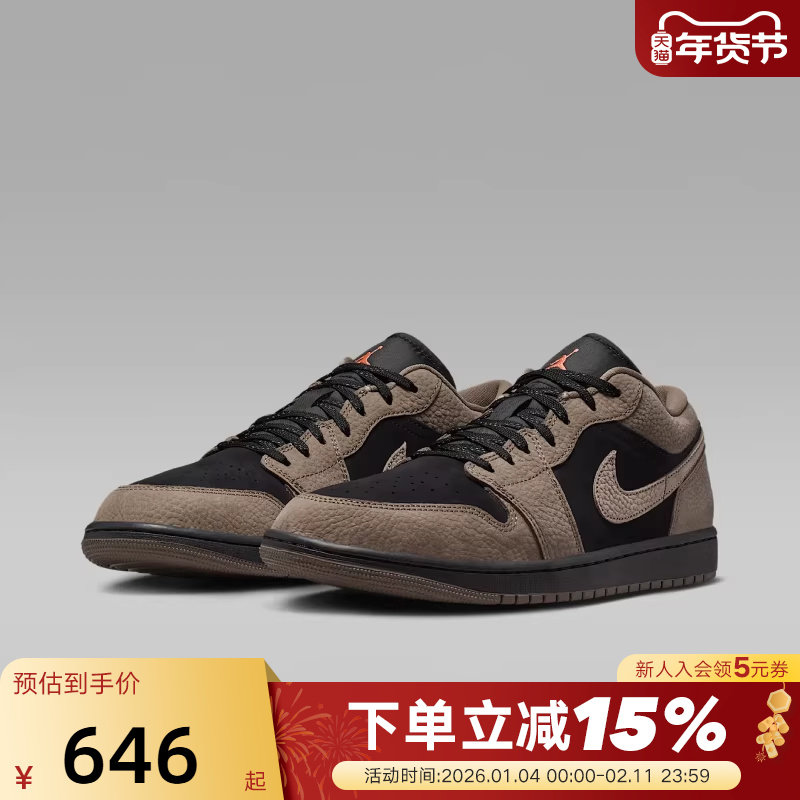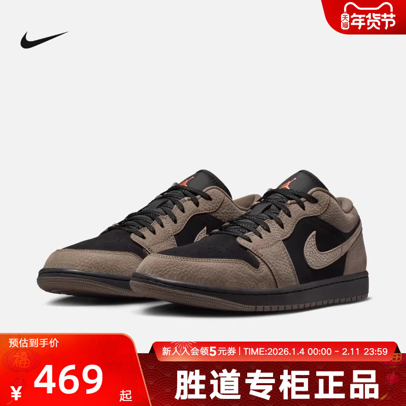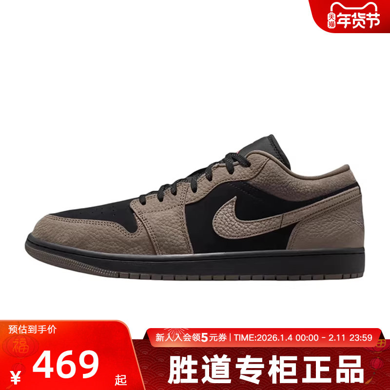 Jordan耐克男鞋AJ1摩卡小倒钩棕黑低帮板鞋复古篮球鞋IB7109-005