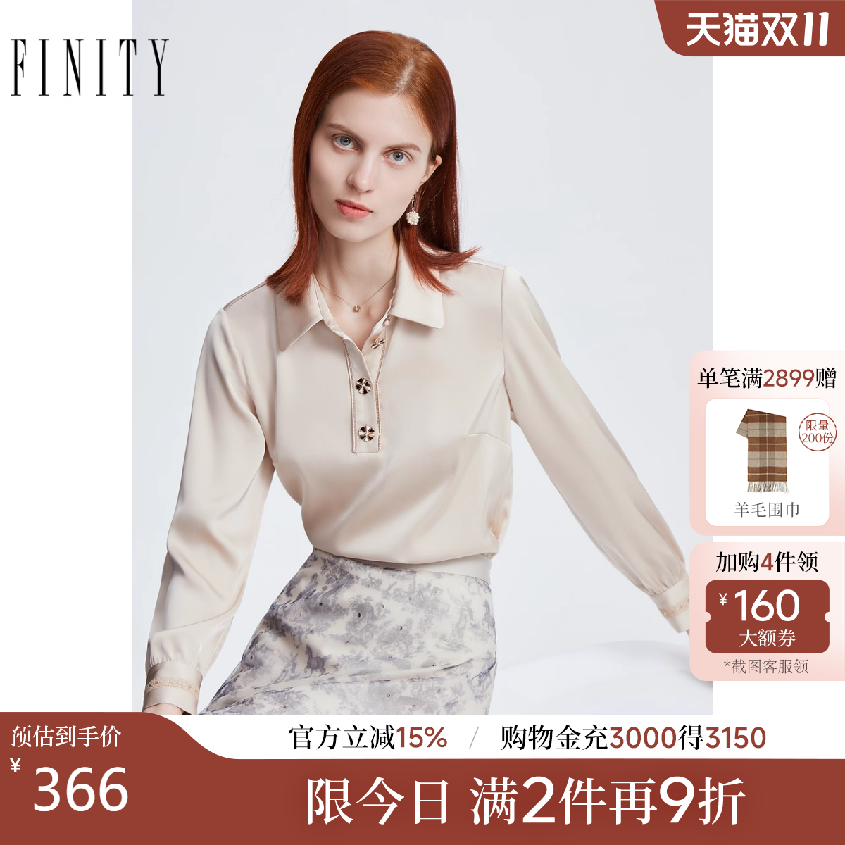 菲妮迪女装品牌衬衫2025秋季新款简约气质翻领时尚修身通勤上衣女
