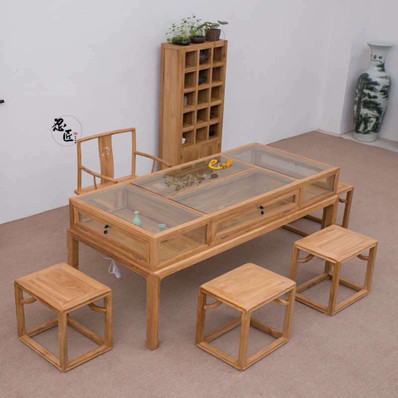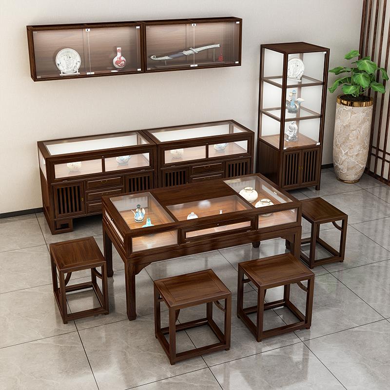 榆木展示柜新中式珠宝柜台首饰文玩玻璃展台桌玉器货柜商场中岛柜
