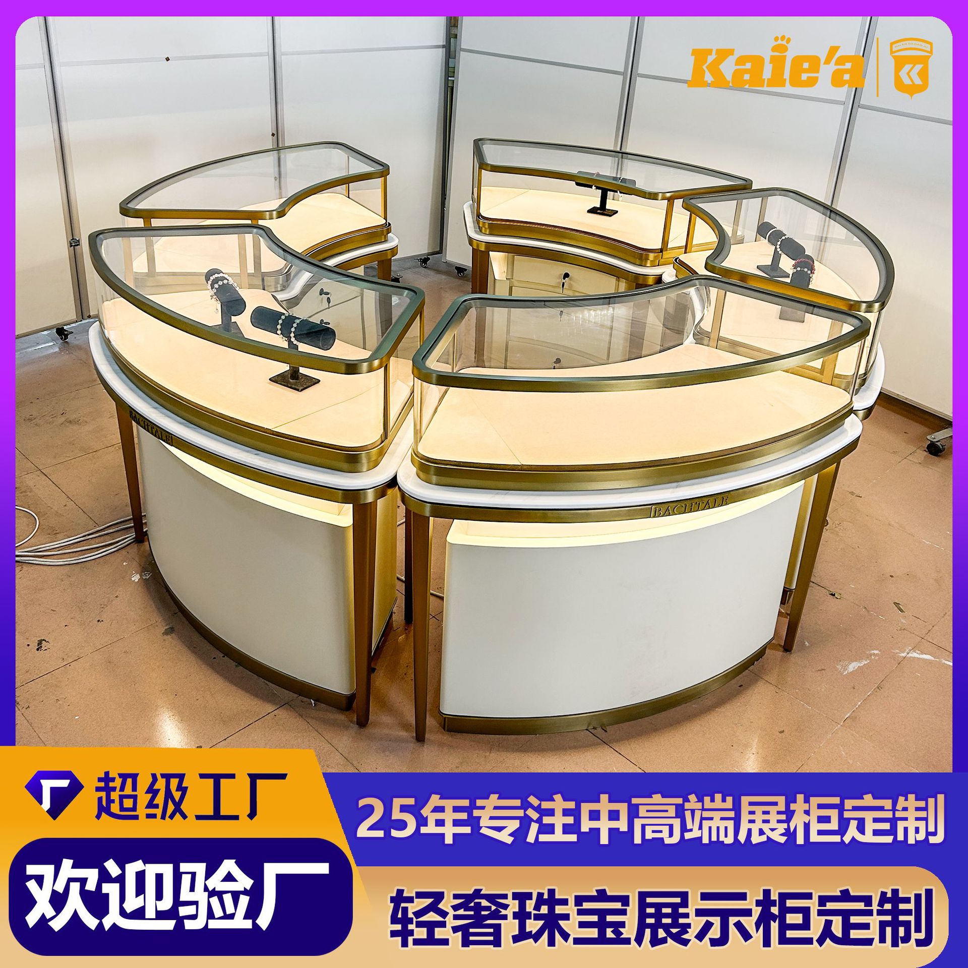 高端弧形珠宝展示柜定制奢侈品饰品中岛柜不锈钢玻璃展柜珠宝柜台