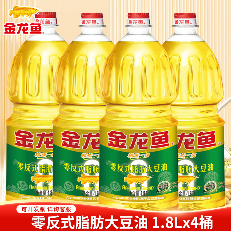 金龙鱼精炼一级零反式脂肪大豆油1.8L*4桶炒菜烹饪食用油批发团购