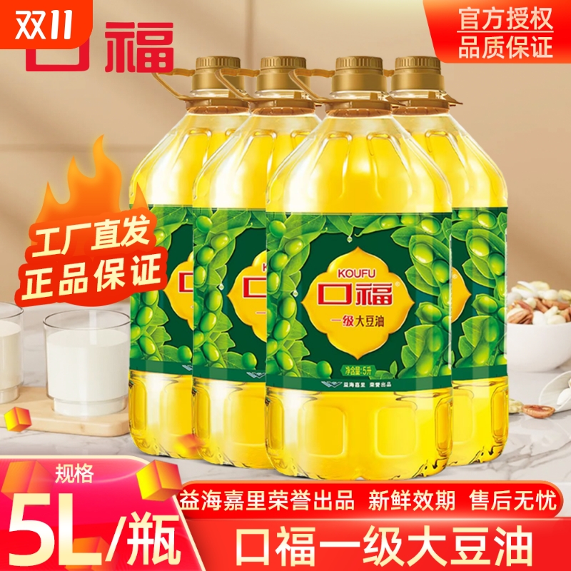 【工厂直销】口福一级大豆油5L煎炒烹炸桶装批发整箱新日期食用油