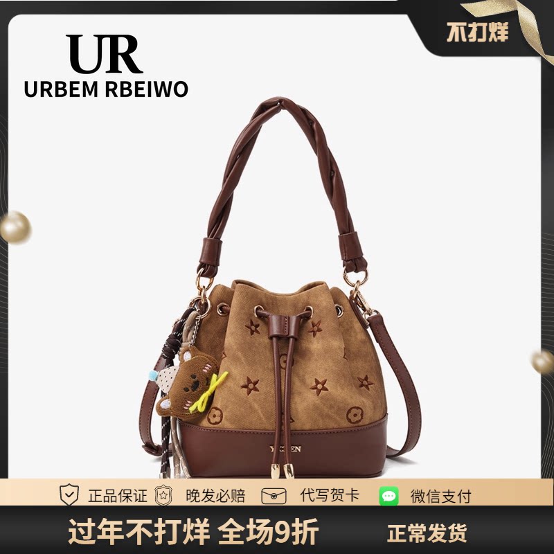 UR包包女秋冬韩国小众高颜值水桶包复古美拉德风手提包单肩斜挎包