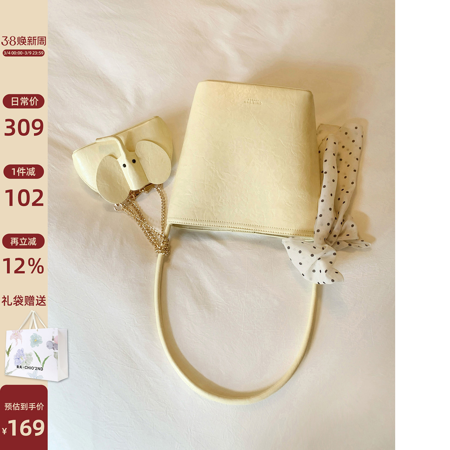 南风Chio2nd 美丽时光托特包包女秋冬小众手提单肩包送小象零钱包