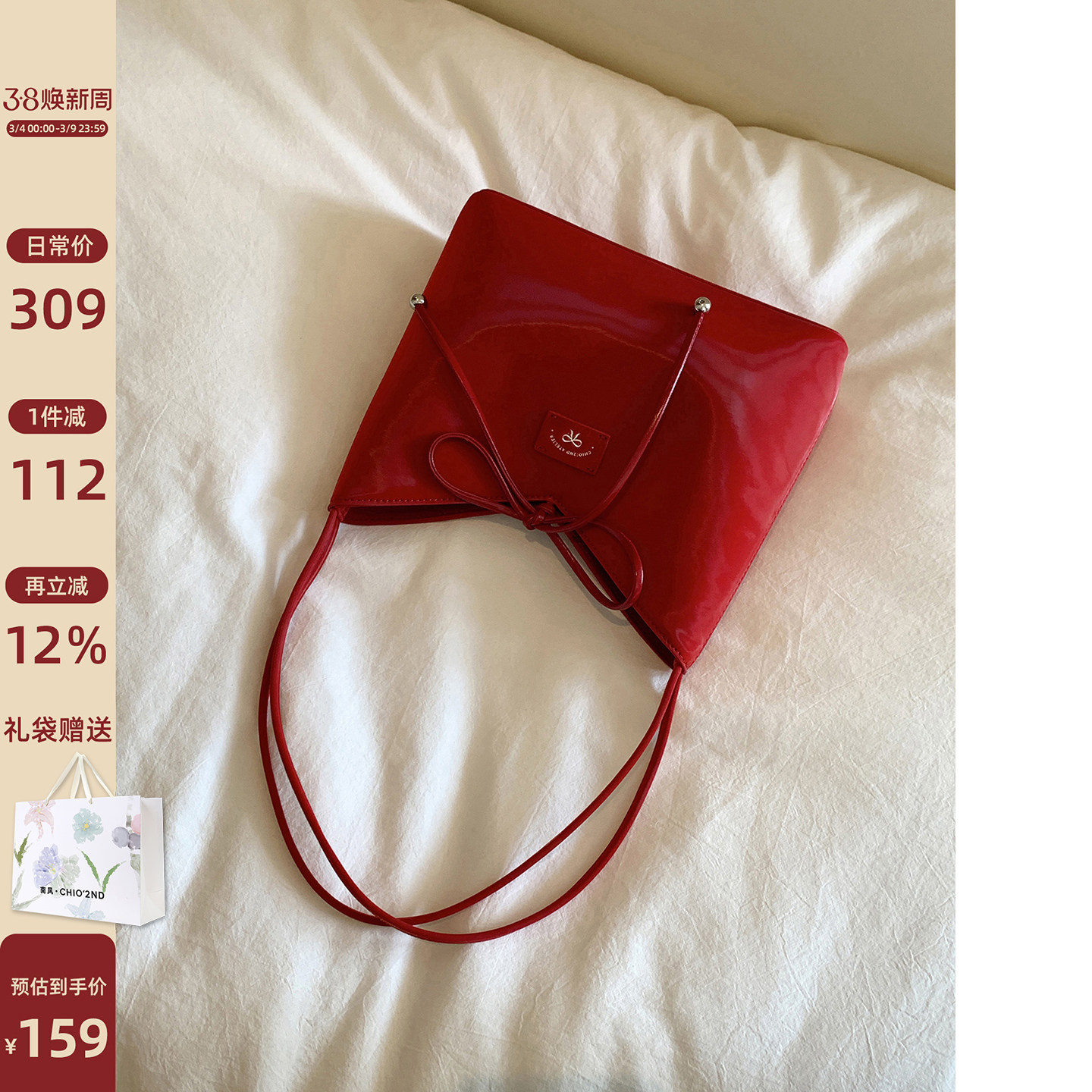 南风Chio2nd 冬月童话真皮牛皮小托特包包女秋冬红色手提单肩斜挎