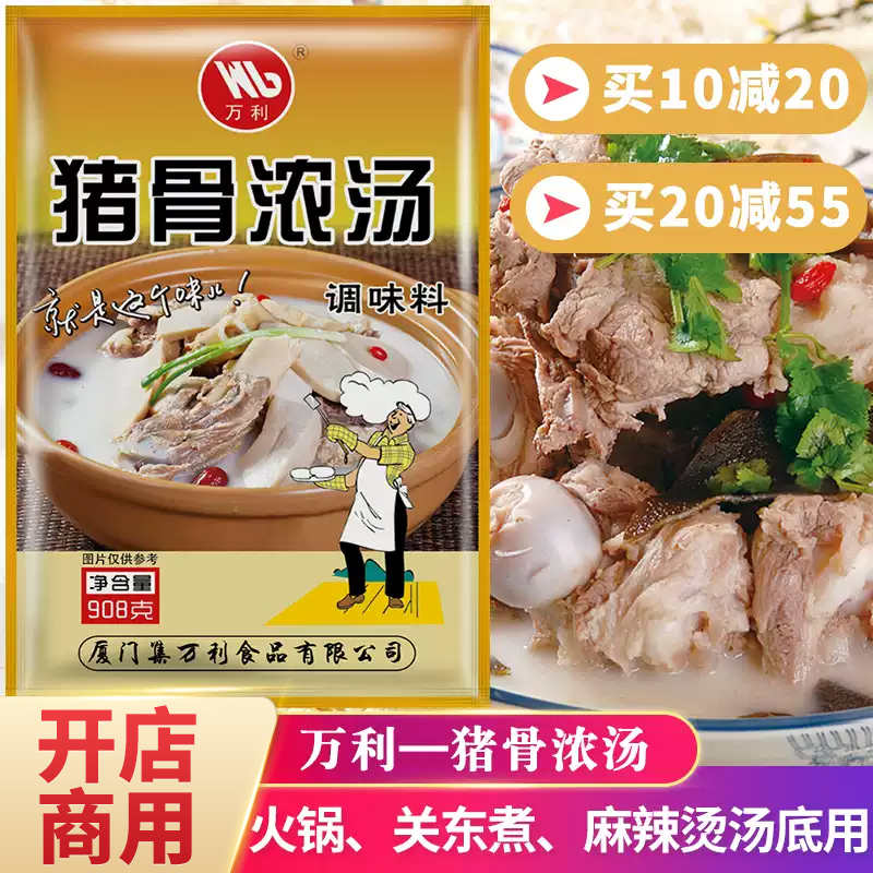 万利猪骨浓汤调味料大骨汤料白汤骨汤浓缩商用麻辣烫火锅底料908g