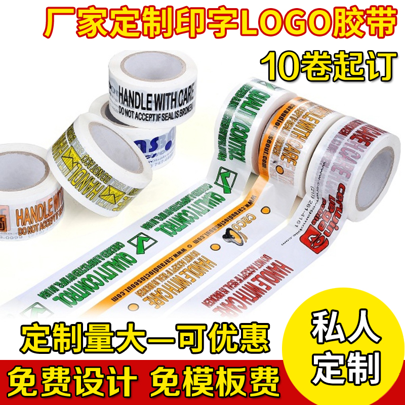定制LOGO印字胶带封箱打包带胶布胶纸胶卷批量印刷批发限区包邮