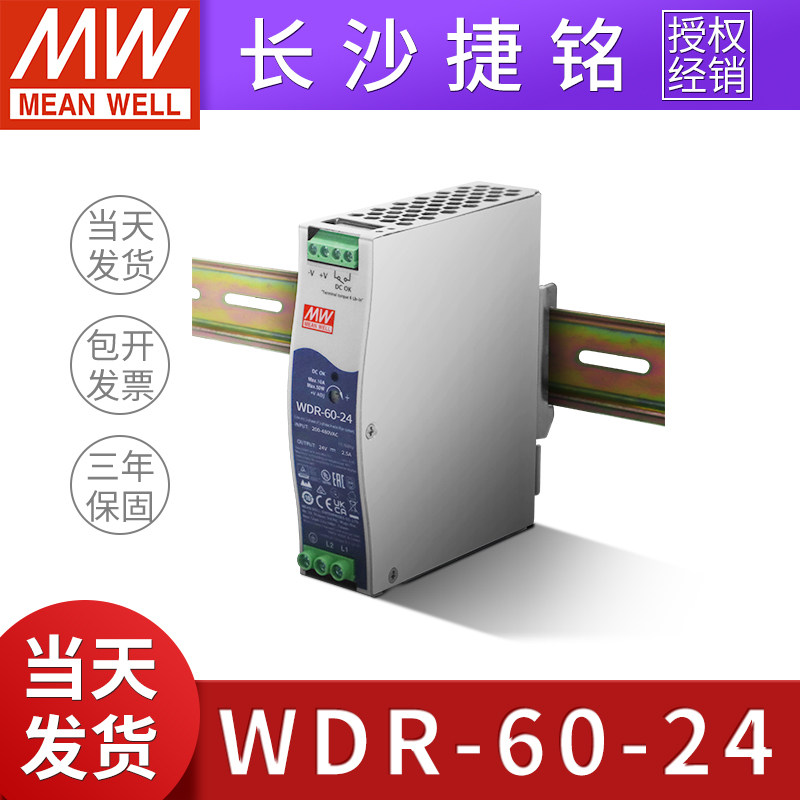 台湾明纬开关电源WDR-60-24 超宽输入工业导轨型电源24V 2.5A 60W