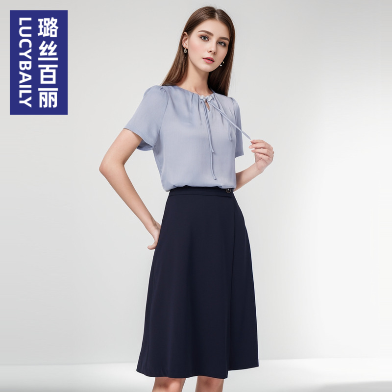 璐丝百丽时尚套装2024新款女装夏季职业套裙短袖衬衫A字裙两件套