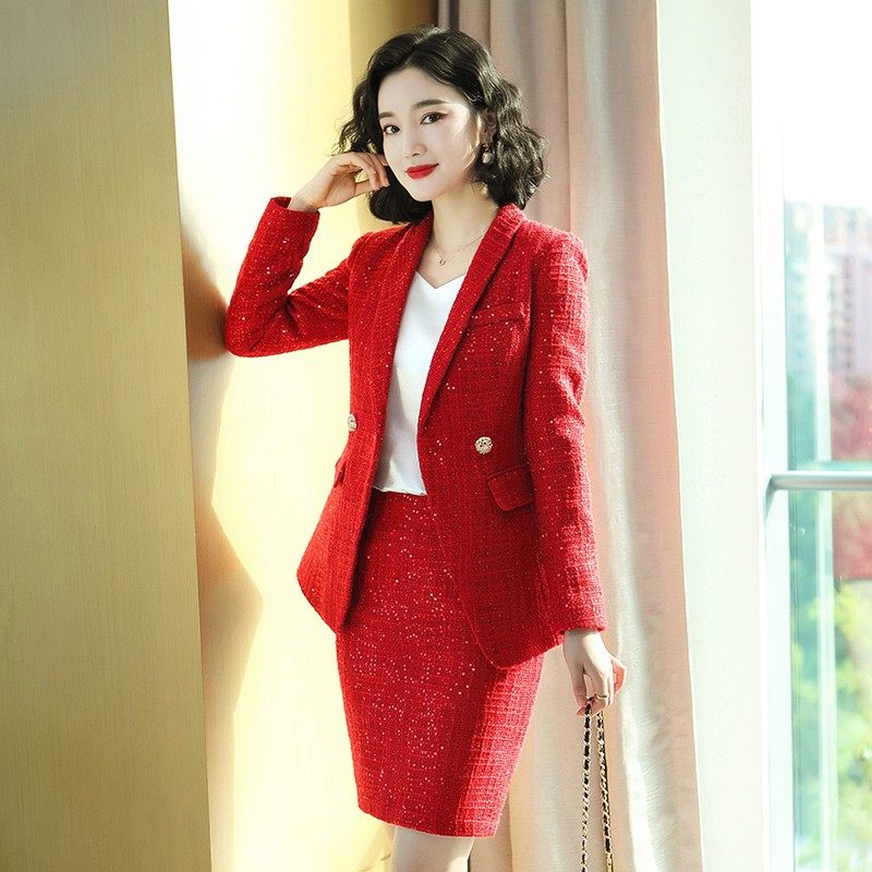秋冬款女装2021年新款套裙高端职业气质正装时尚高档西装双排扣