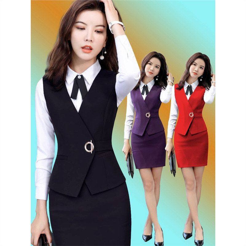 春秋季新款马甲背心女外搭时尚短款马夹套裙咖啡店潮流职业装工装