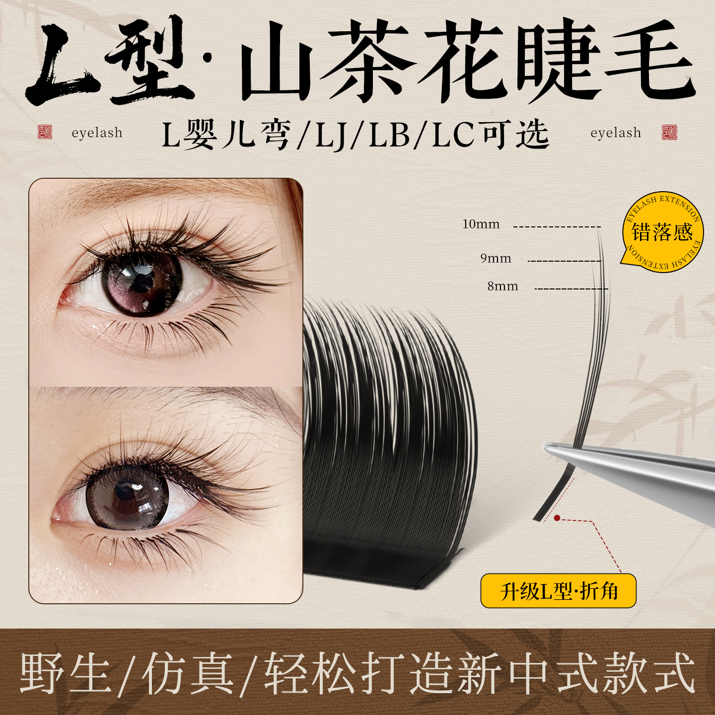 国风LC山茶花睫毛美睫店专用嫁接新中式翘睫漫画款狐系多取不散根