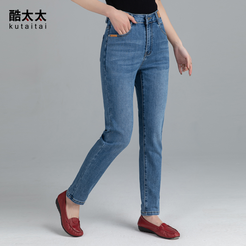酷太太小脚牛仔裤2025春秋牛仔蓝铅笔裤大码女裤修身弹力长裤显瘦