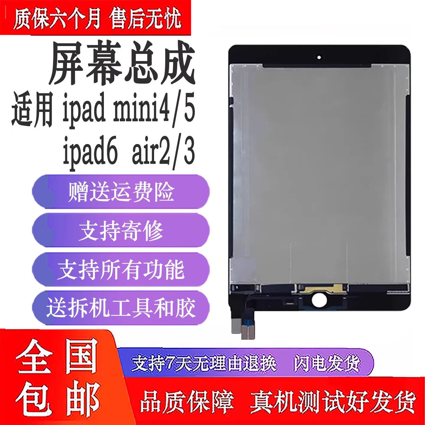 iPad3/4/5/6/7/8/9更换外屏Air2触摸屏mini2内屏幕总成维修寄修