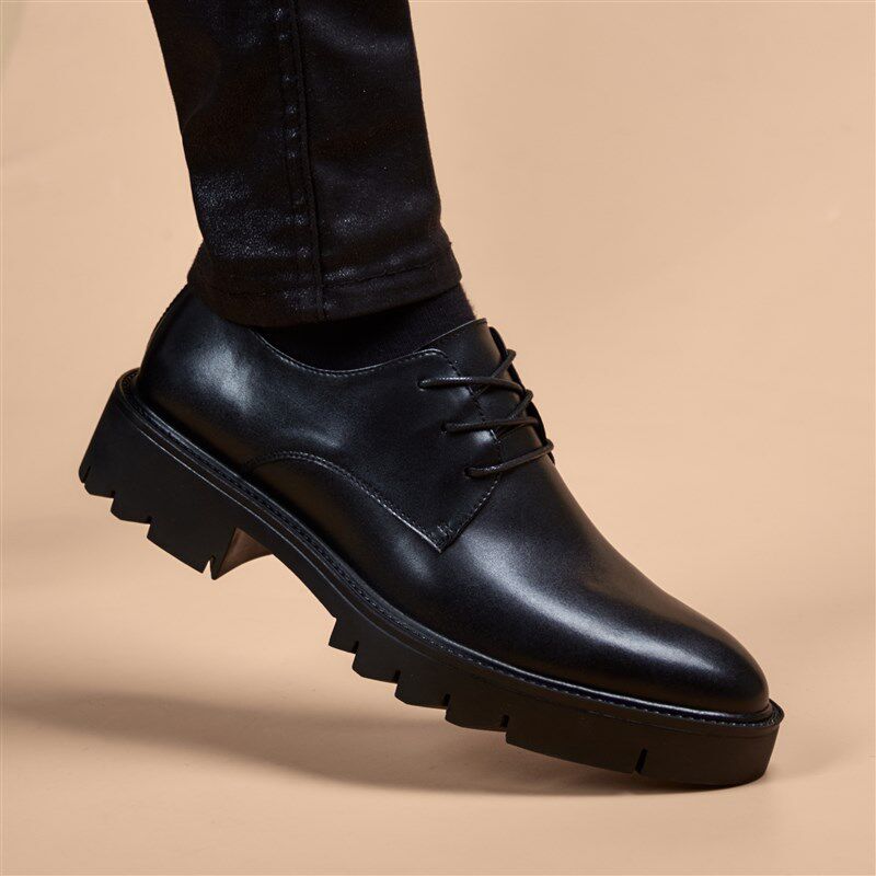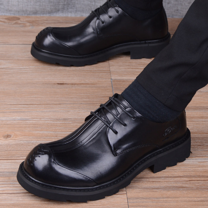 冬季皮鞋男真牛皮韩版英伦休闲黑色潮流厚底内增高软底发型师男鞋