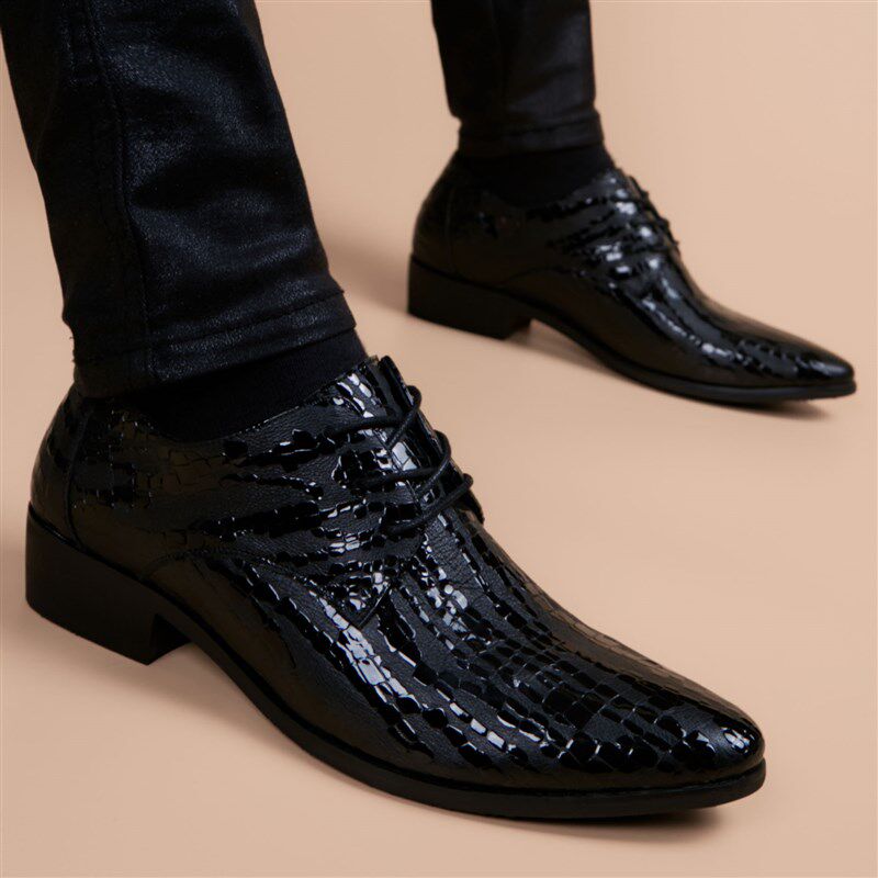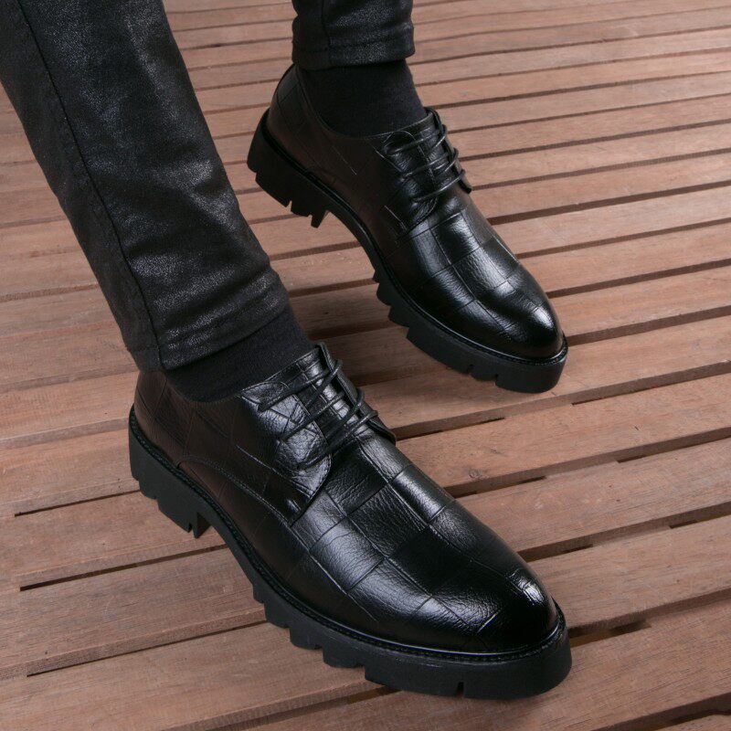 皮鞋男韩版潮流英伦尖头系带婚鞋商务正装百搭冬季休闲内增高男鞋