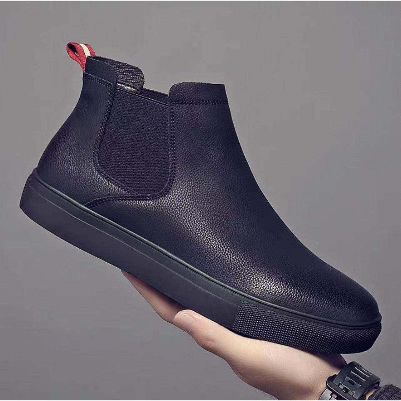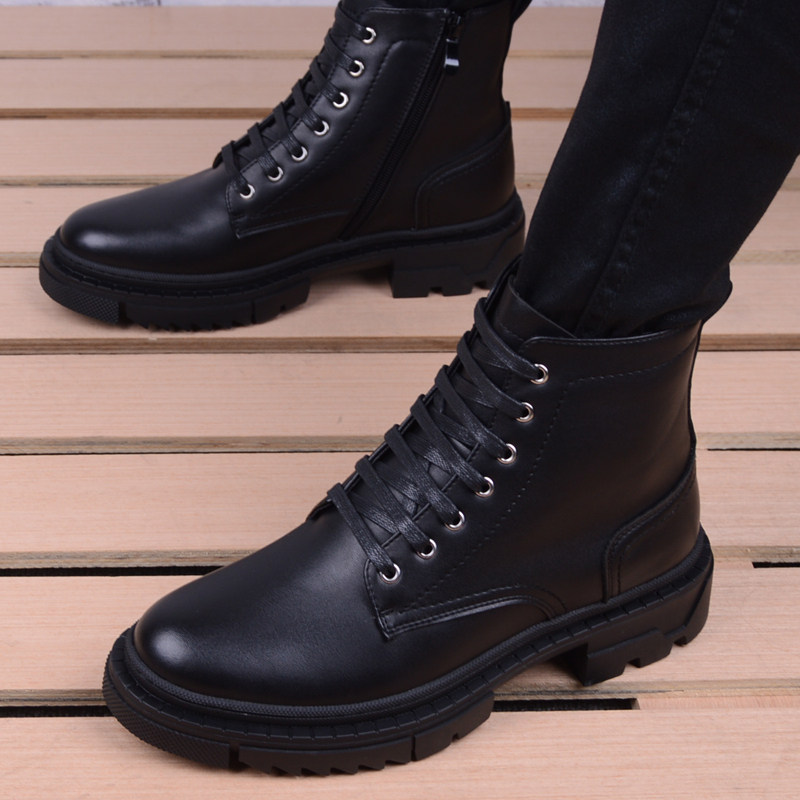 冬季加绒马丁靴男高帮皮鞋真皮韩版潮流百搭中帮英伦风保暖切尔西