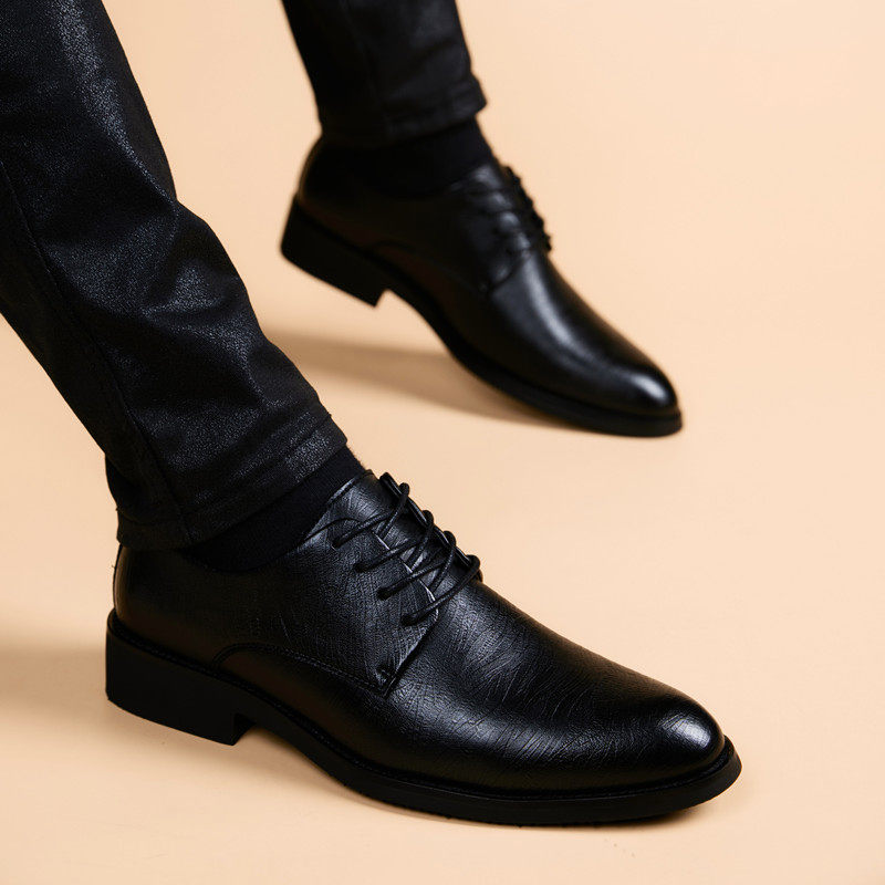 冬季尖头皮鞋男韩版正装真皮透气潮流内增高黑色英伦商务休闲男鞋
