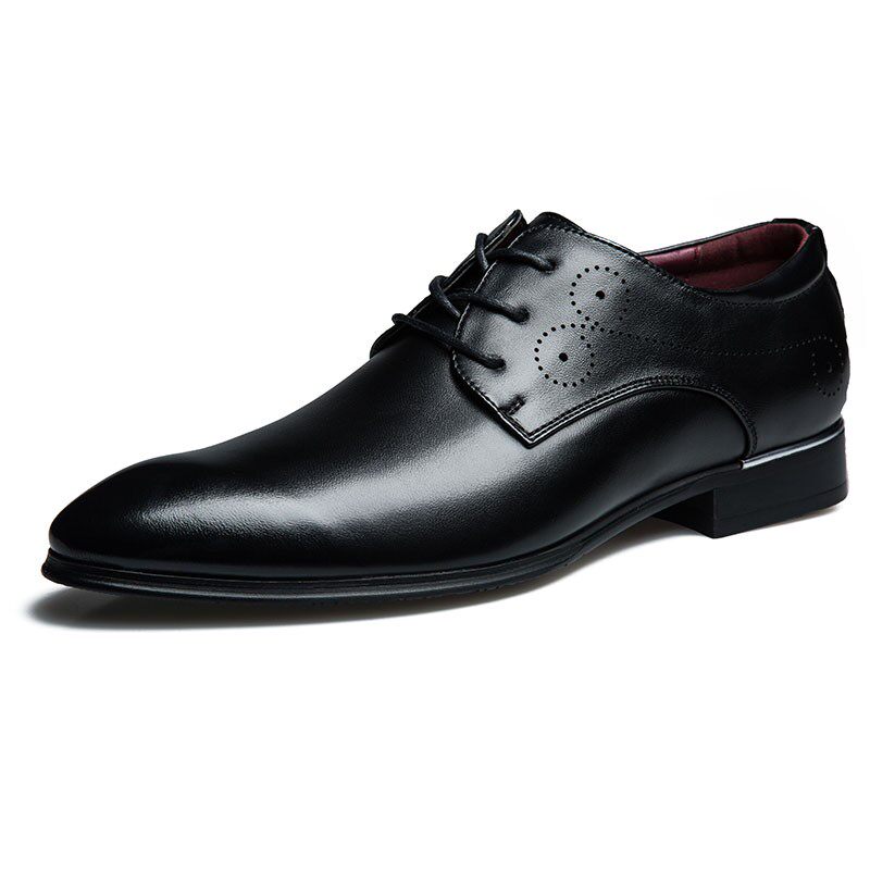 冬季皮鞋男韩版潮流透气英伦尖头系带鞋真皮内增高商务休闲男鞋子
