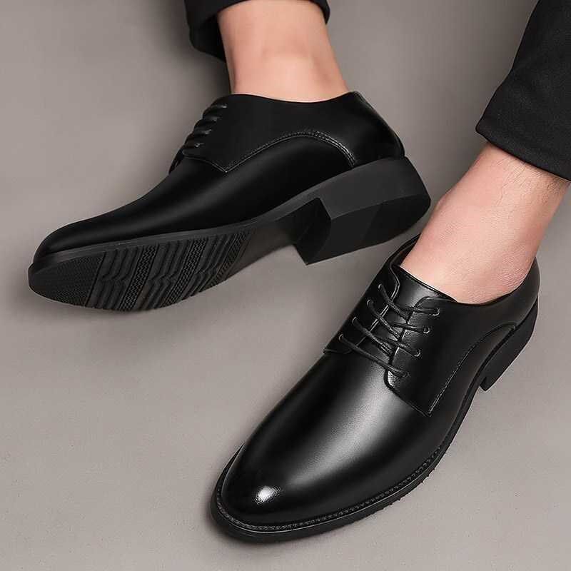 冬季商务正装皮鞋男韩版透气潮流英伦内增高黑色尖头休闲真皮男鞋