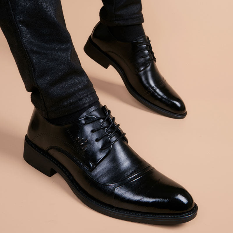 真皮商务正装皮鞋男韩版潮流系带内增高冬季青年软底尖头英伦男鞋