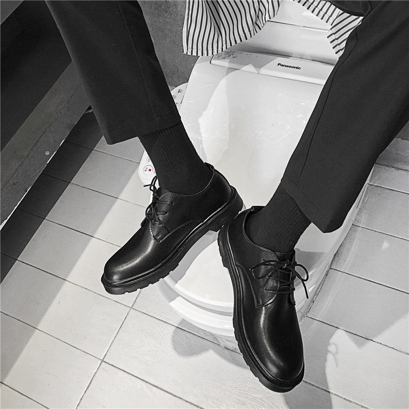 商务男士圆头休闲皮鞋英伦大头皮鞋韩版潮流男鞋冬季加绒工装皮鞋