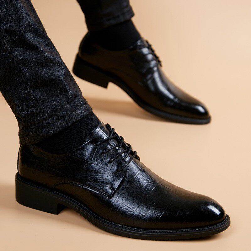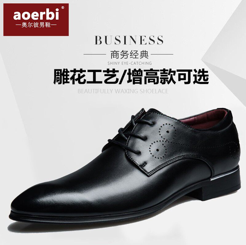 皮鞋男英伦休闲真皮韩版潮流商务正装男鞋透气内增高男士皮鞋冬季