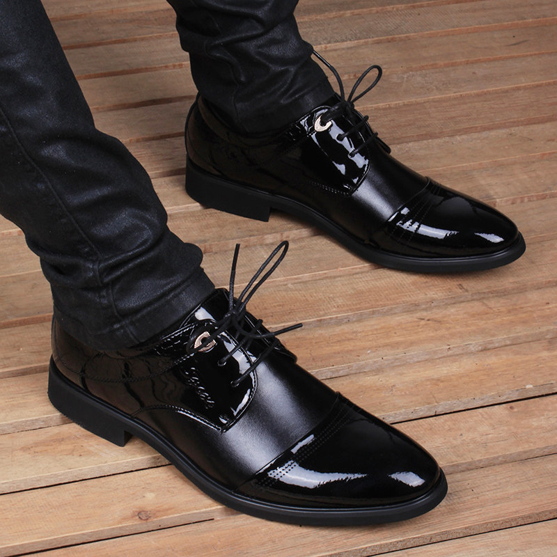冬季英伦尖头皮鞋男韩版潮流商务休闲软皮男鞋内增高真皮男士婚鞋