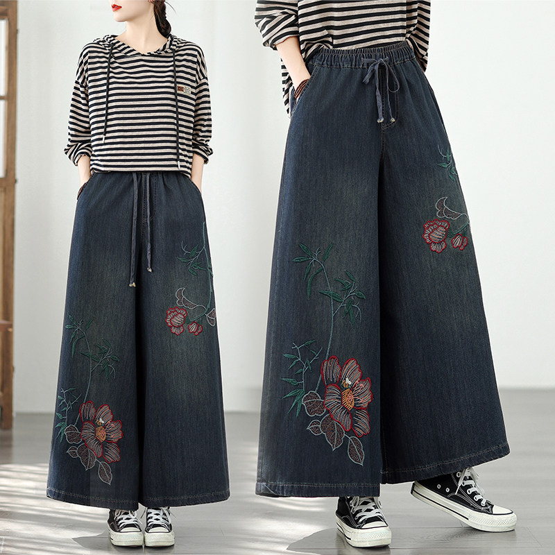 - 阔腿裤女牛仔