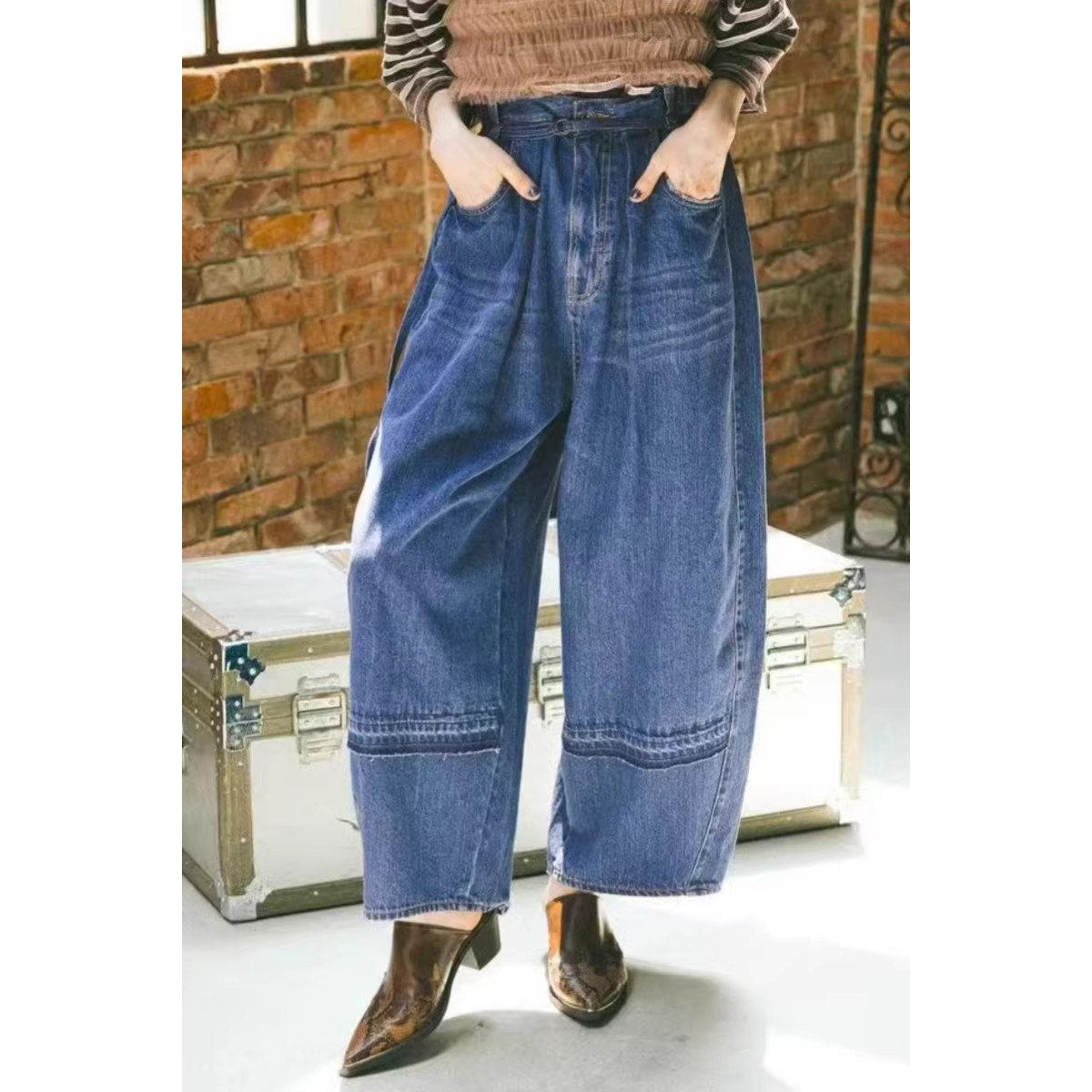 - 宽松直筒牛仔裤女