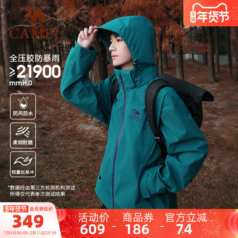 骆驼赤焰雨单层冲锋衣男女户外防风防水防暴雨徒步登山服绿色外套