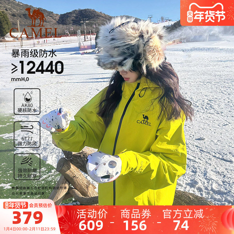 骆驼户外雨神单层冲锋衣男女新款青果绿色防风防水硬壳外套滑雪服