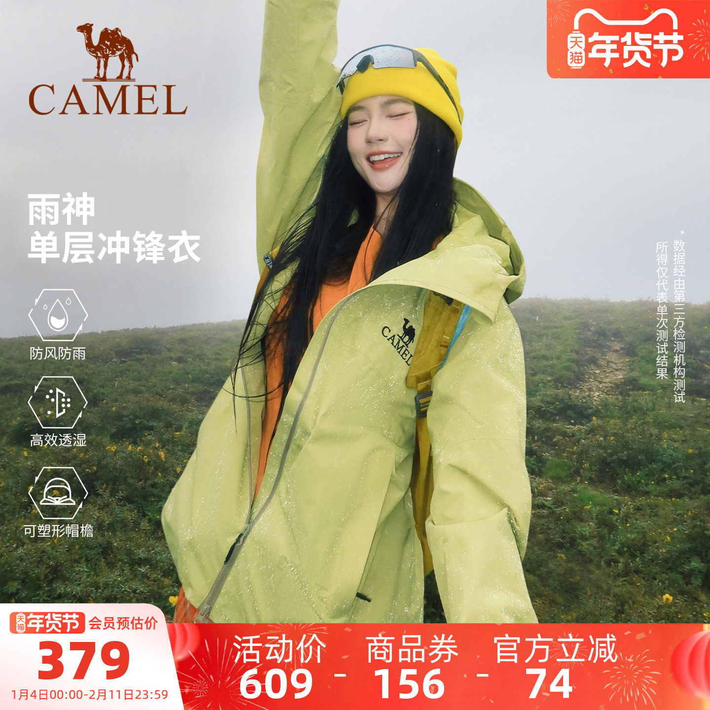 [明星同款]骆驼雨神单层冲锋衣男女新款轻量化防水登山服亮色外套