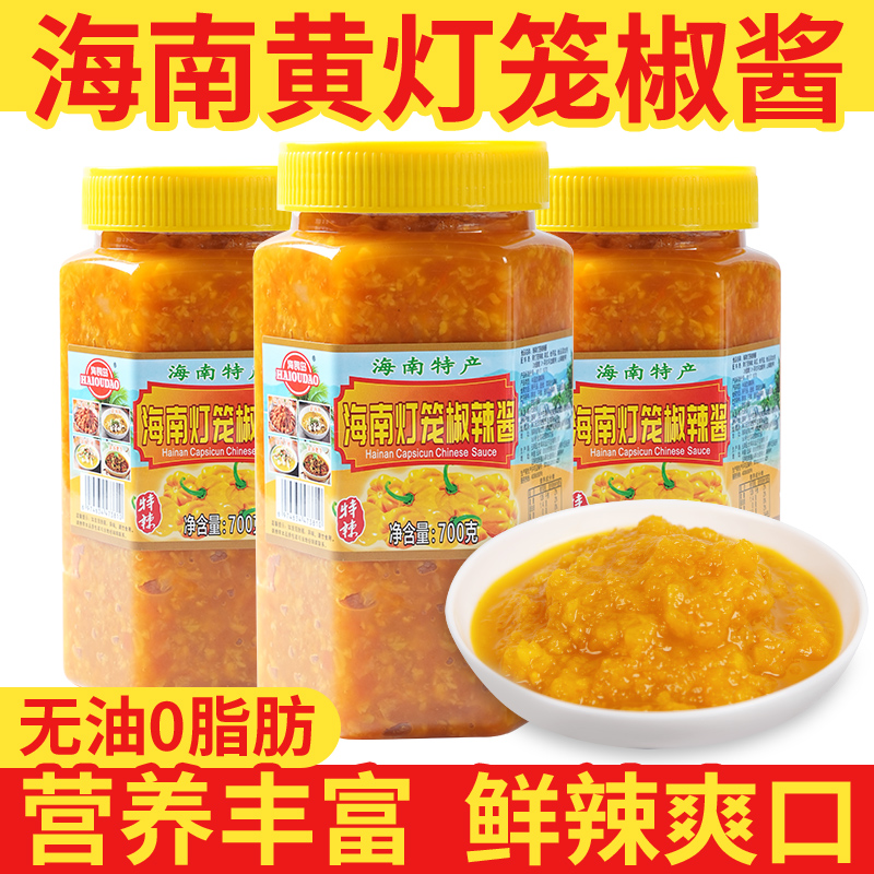 海南特产琼酱王黄灯笼辣椒酱700g特辣蒜蓉香辣下饭酸汤肥牛黄椒酱